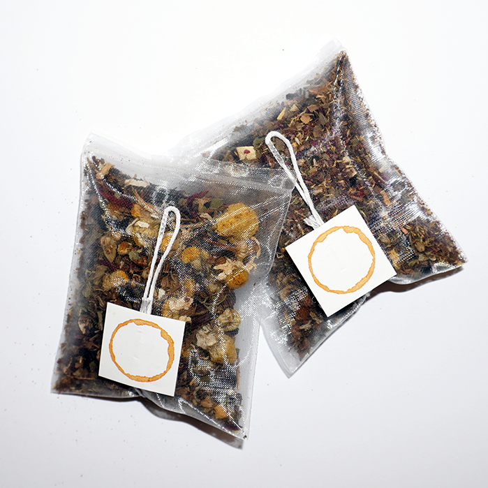 Holy Basil, Chamomile, Sumac Berry, Peppermint, Licorice Root, Hibiscus.